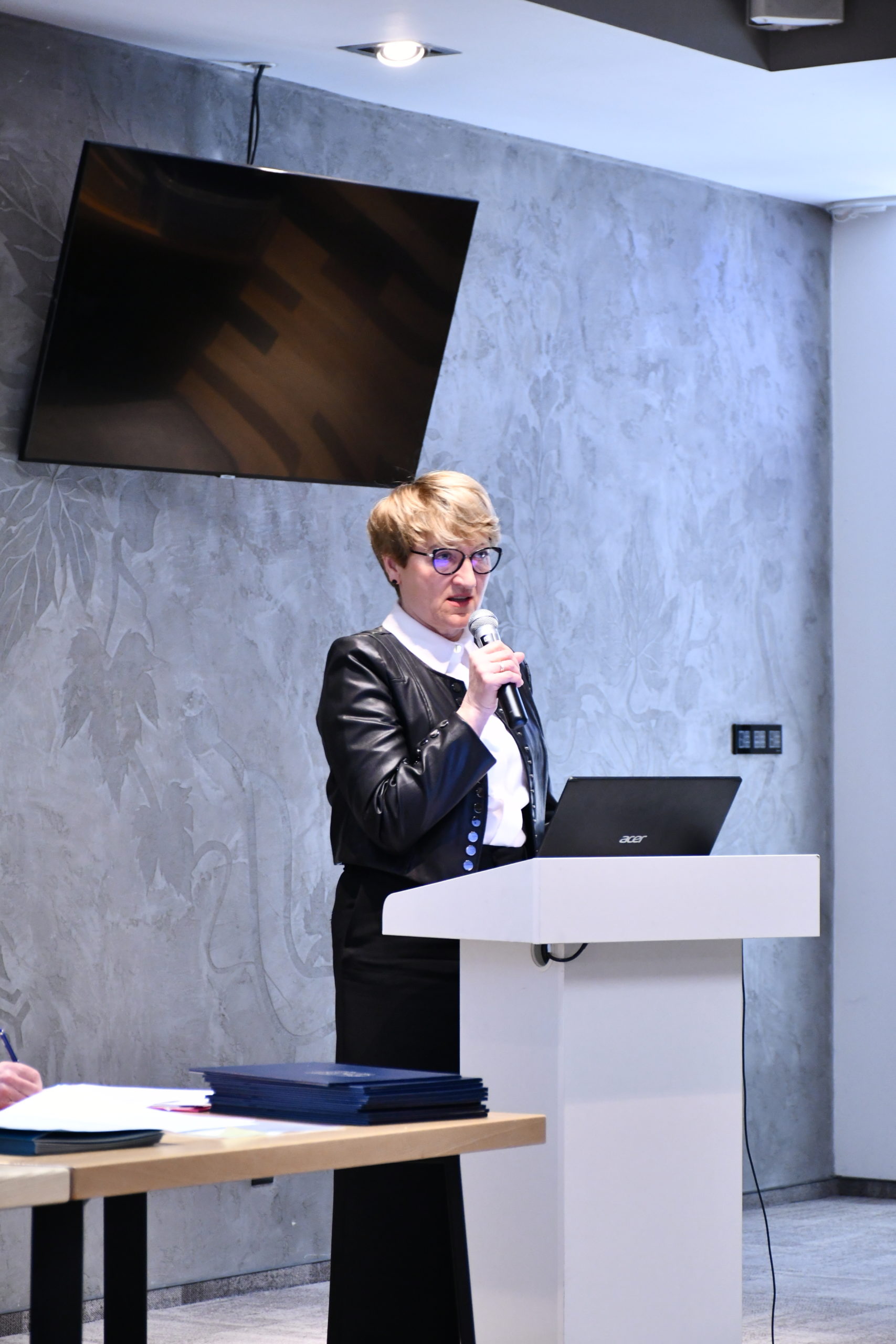 W części oficjalnej ustępująca Prezes ORL dr n.med. Marzenna Plucińska przywitała obecnych na sali delegatów oraz zaproszonych gości: